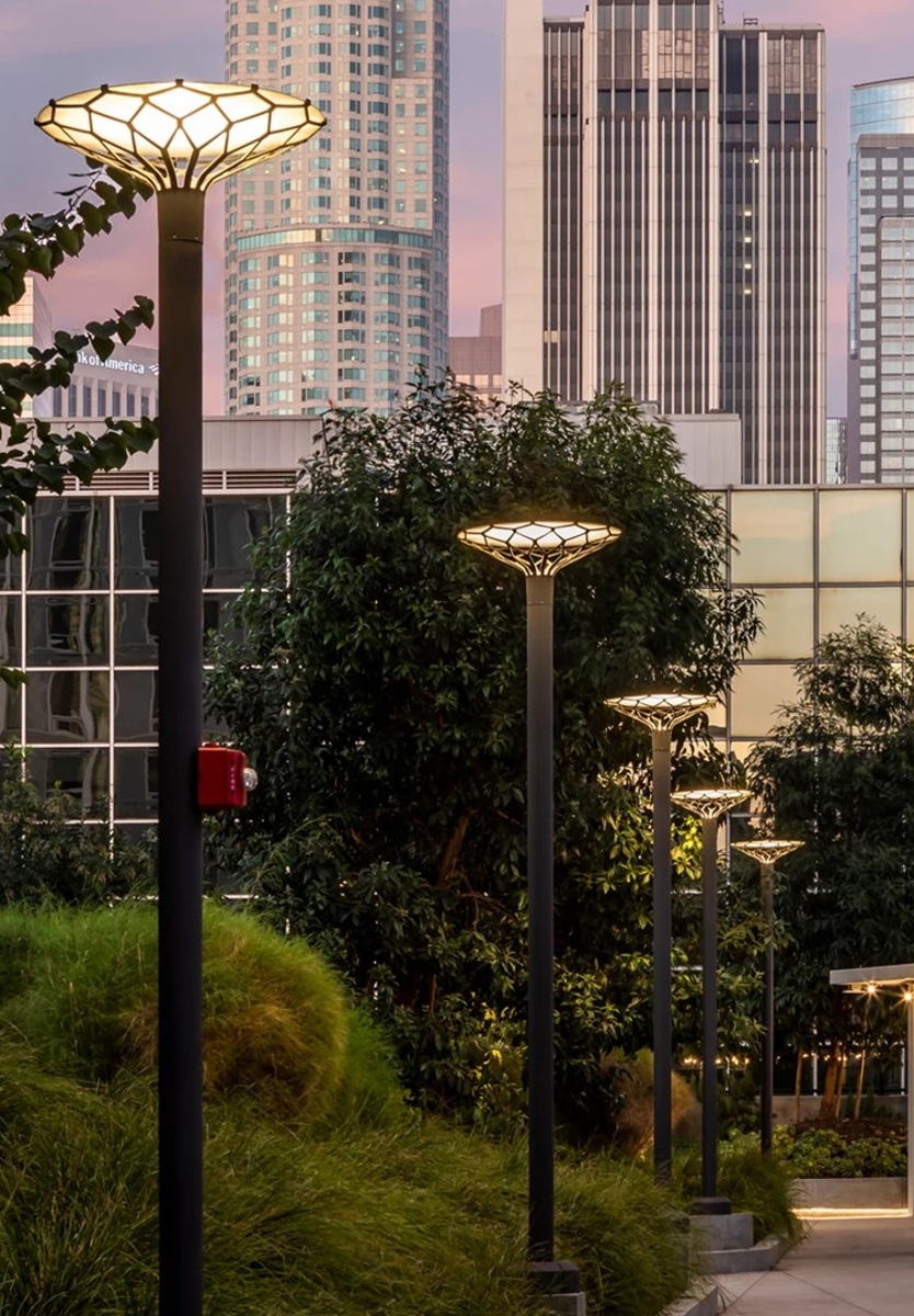 LP Nest was launched in 2010 and was designed by Bystrup Design. The designer was tasked with creating a post light focusing on technical requirements such as cut-off criteria and glare-free lighting, as well as specific aesthetic aspects. The idea was to take inspiration from structures in nature. Erik Bystrup explains LP Nest as follows: The lamp shade grows out of the cool steel trunk like a stylistic tree crown. A filigree pattern that imitates winters beautiful denuded trees as it gently lifts a disc of life-giving light. The design takes into consideration the development of new light sources. This adaptability adds to the fixtures appeal.